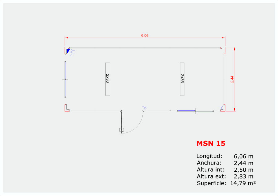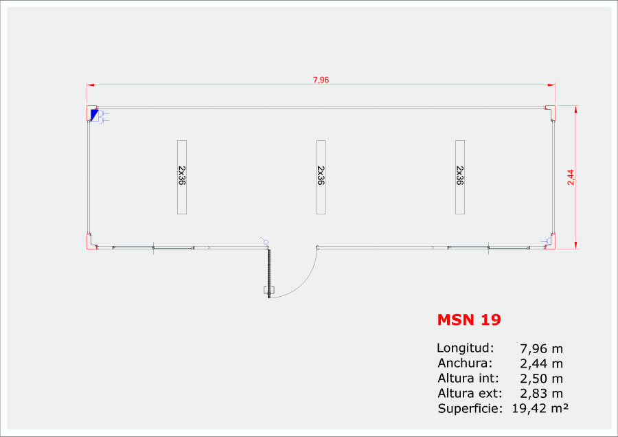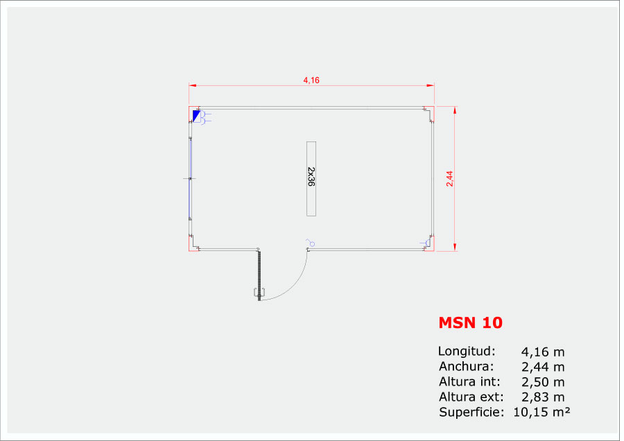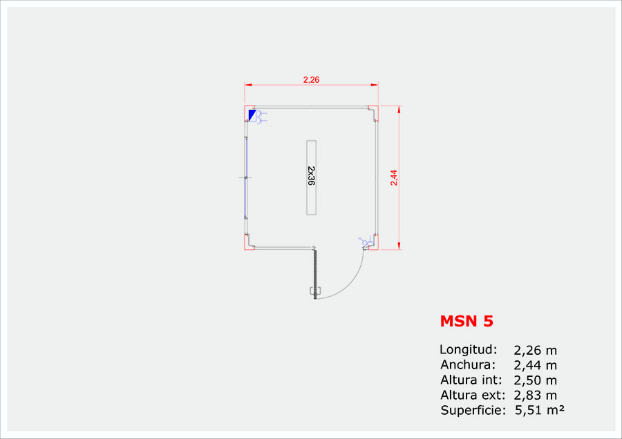 - Cerramiento en panel de chapa prelacada o gofrada y espuma de poliuretano con un espesor de 40 mm, siendo los paneles intercambiables en modulaciones de 1 m.